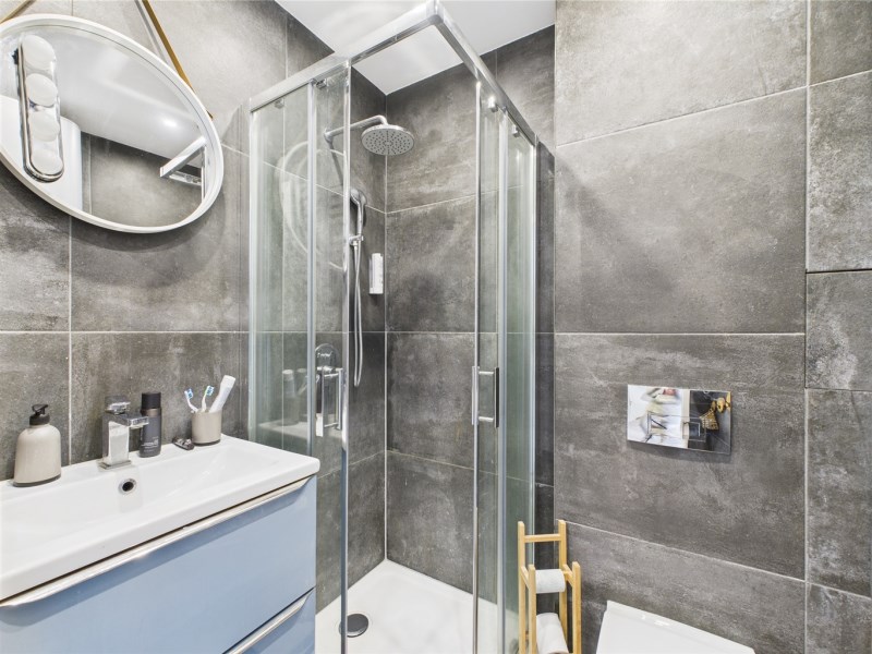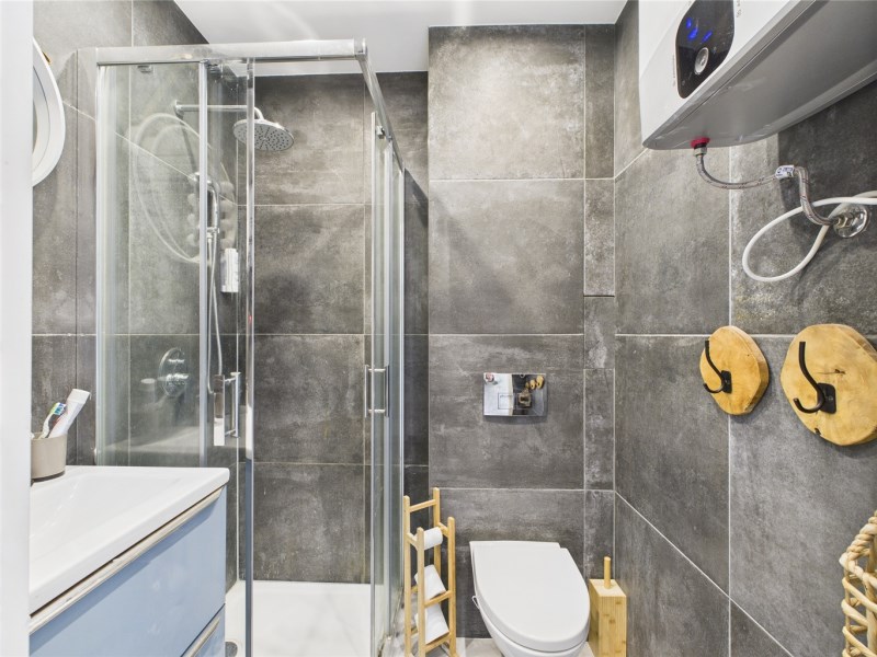Łazienka z kabiną prysznicową i WC