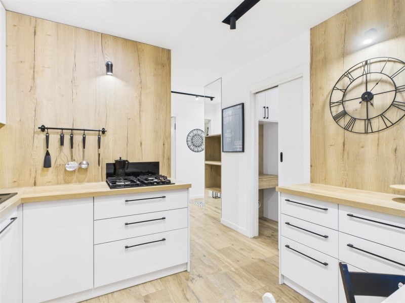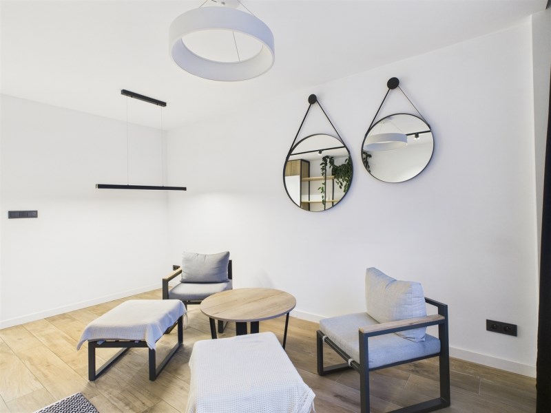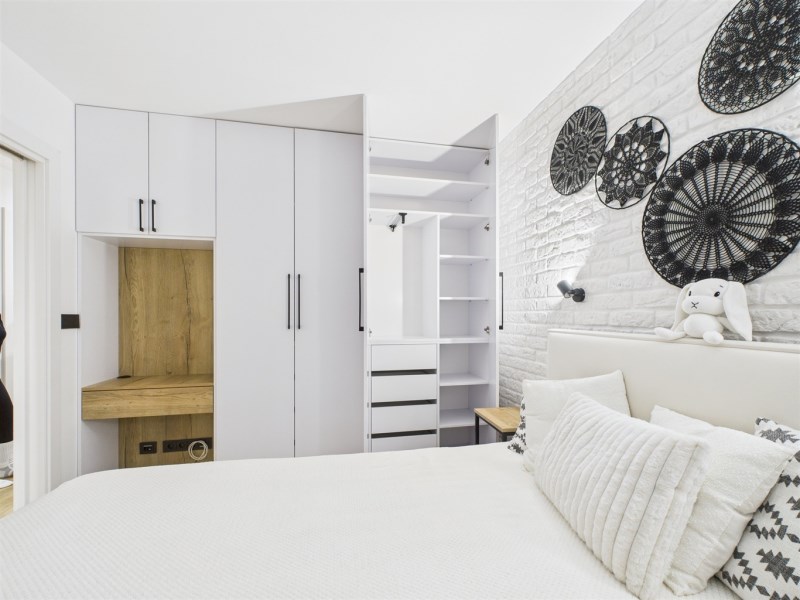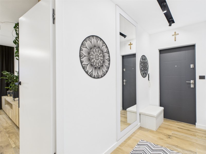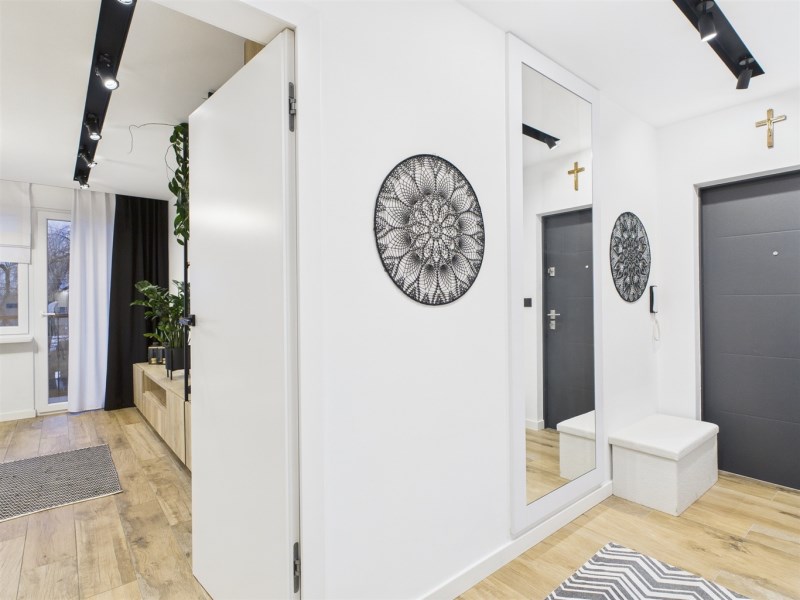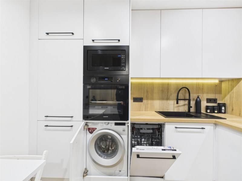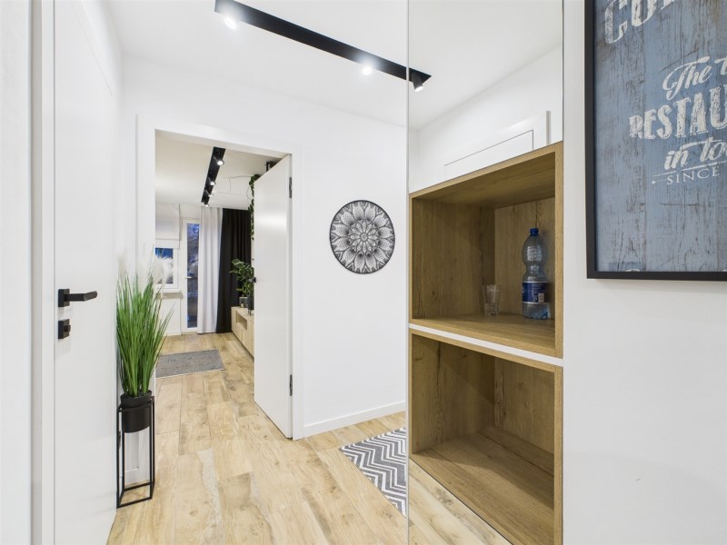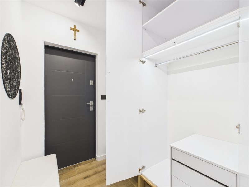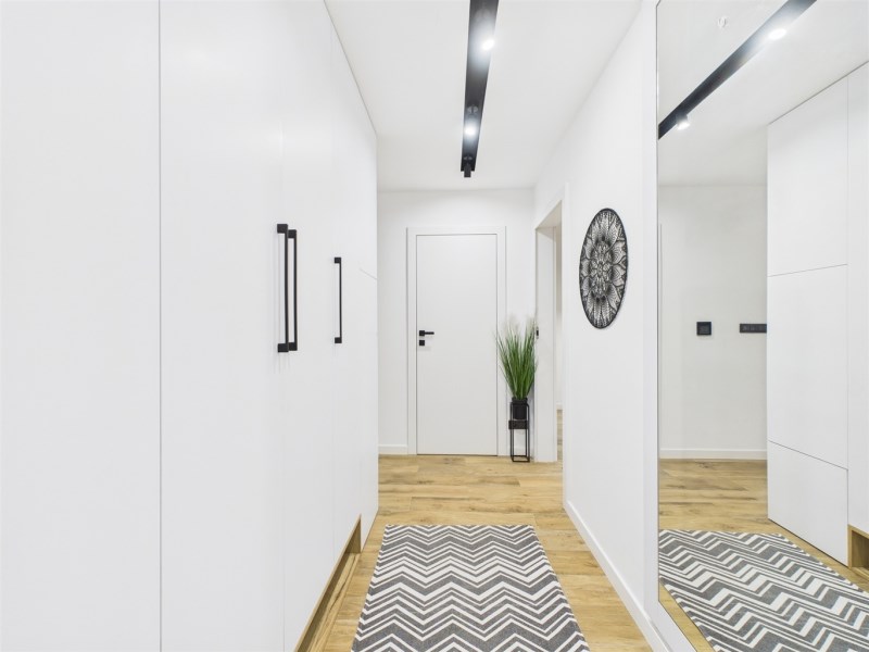 Mieszkanie umeblowane i wyposażone w AGD (lodówka, pralka, piekarnik, mikrofala, płyta gazowa, zmywarka). Zabudowy wykonane na wymiar, duży balkon, jednolite podłogi, klimatyczne oświetlenie. Łazienka z wanną i podgrzewanym lustrem.